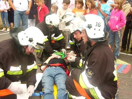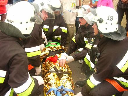 05 sierpnia 2007 roku zorganizowaliśmy na festynie wiejskim pokaz ratownictwa drogowego. Założeniem zdarzenia był wypadek samochodowy z dwiema osobami poszkodowanymi.