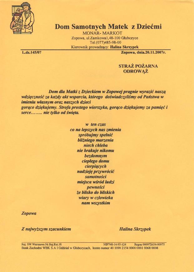 Serdecznie podziękowania kierujemy dla wszystkich dobroczyńców, którzy w