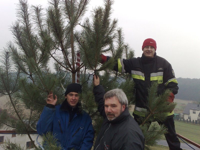 Zdjęcia z montażu choinki na wieży. Dodatkowo w albumie widok z dachu.