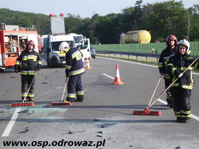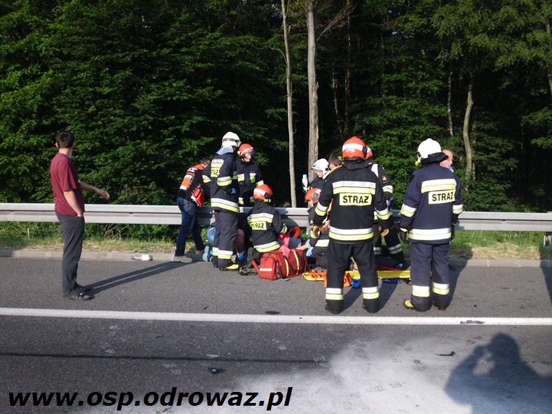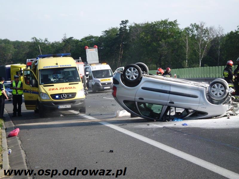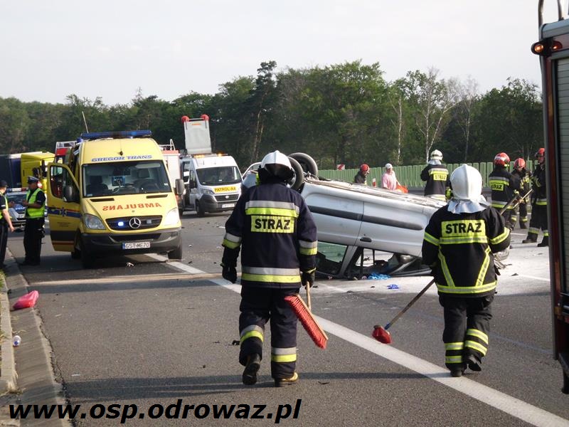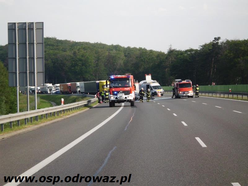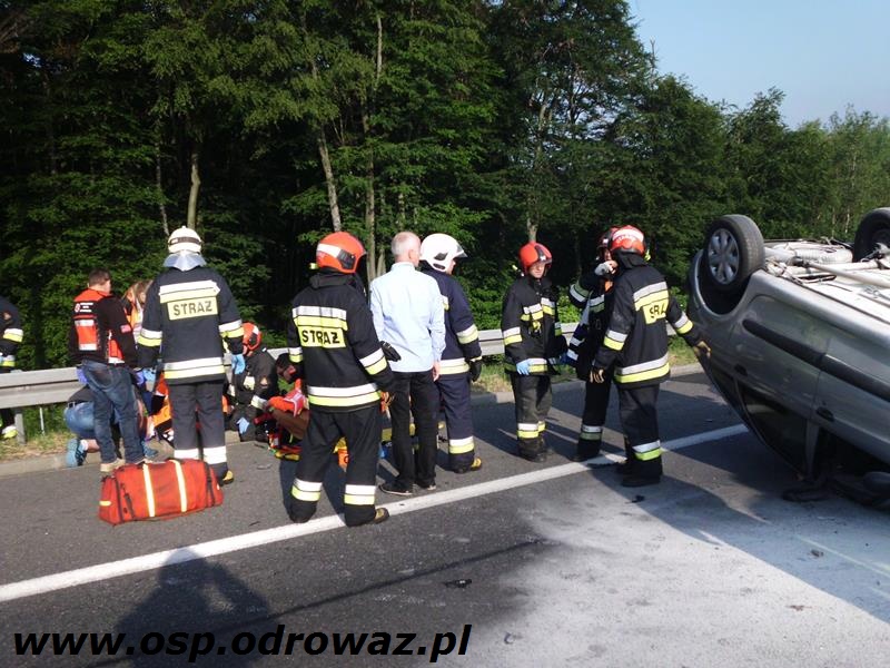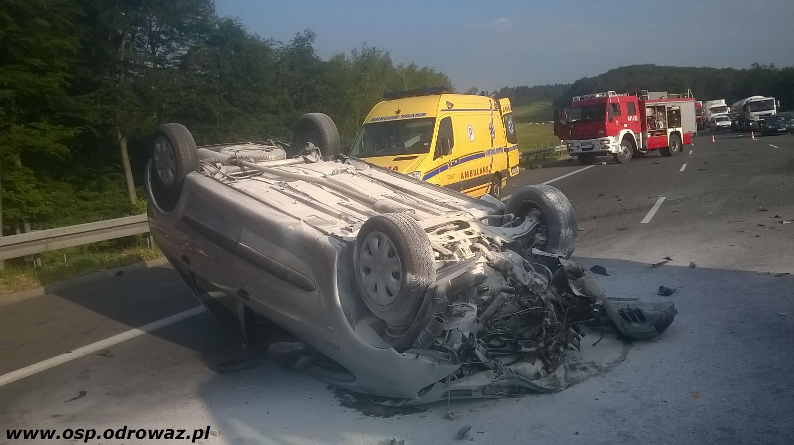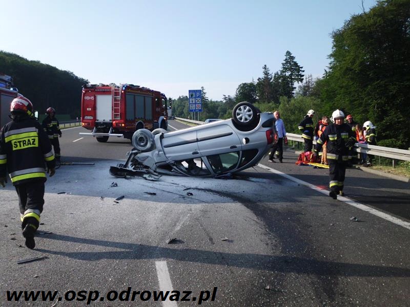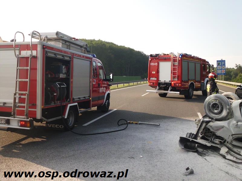 Na 262,4 km w kierunku Katowic doszło do dachowania samochodu osobowego. Na miejsce udał się jeden zastęp naszej jednostki Mercedes GBA Rt 449[o]45 w sile 4 ratowników wraz z JRG Krapkowice. Działania nasze polegały na zabezpieczeniu miejsca zdarzenia oraz neutralizacji substancji chemicznych.Jedna osoba poszkodowana została zabrana do szpitala przez zespół ZRM. Do bazy wróciliśmy o godzinie 8:21.