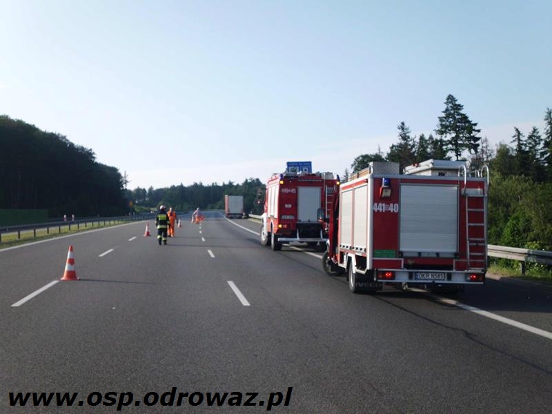 W dniu 10.06.2016r. o godzinie 6:58, prosto po zakończonych działaniach gaśniczych w miejscowości Obrowiec, zostaliśmy przedysponowani na autostradę A4.