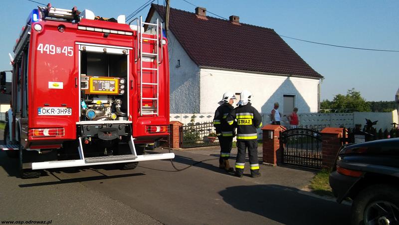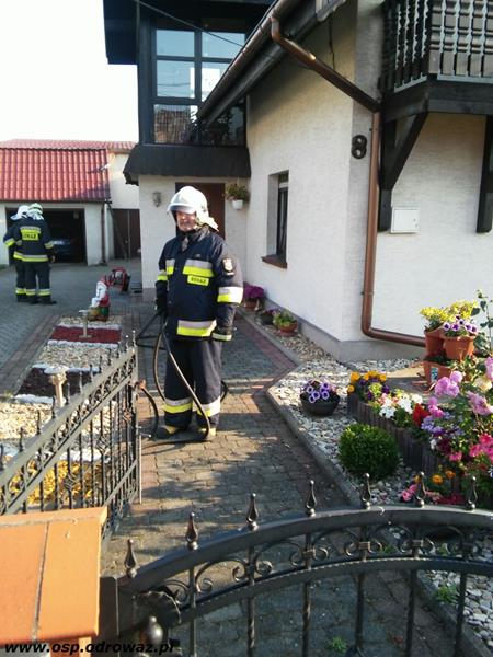 Dyżurny SK PSP w Krapkowicach zadysponował nas do miejscowości Odrowąż na ul.Prostą. Do akcji wyjechał jeden zastęp naszej jednostki Mercedes GBA Rt 449[o]45 w sile 6 ratowników.Po dojeździe na miejsce zdarzenia zastaliśmy zadymienie w pomieszczeniach piwnicznych budynku jednorodzinnego. Działania nasze polegały na jednoczesnym zabezpieczeniu miejsca zdarzenia, podaniu środków gaśniczych w natarciu a także oddymieniu i przewietrzeniu pomieszczeń. Do bazy wróciliśmy o godzinie 18:56.