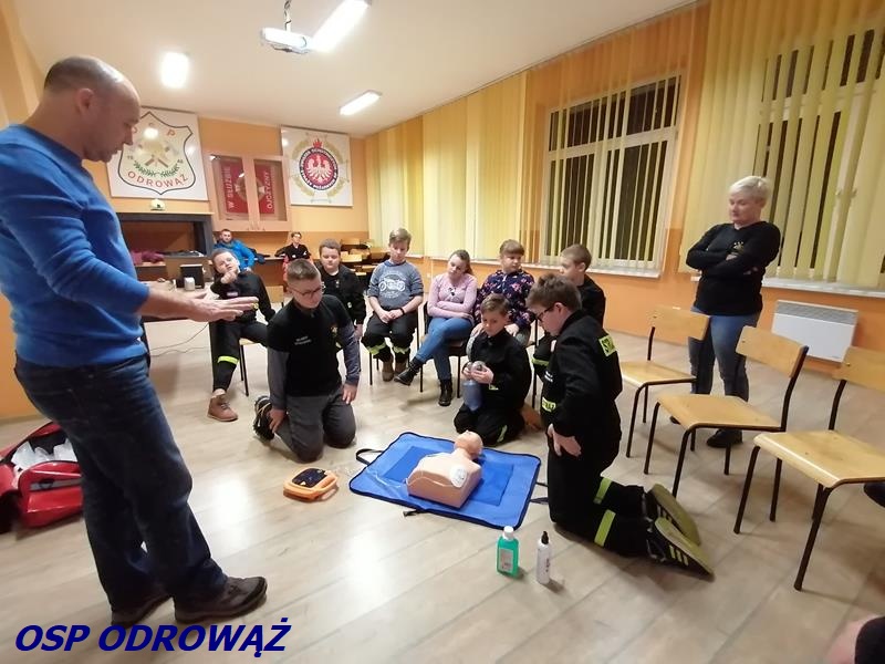Na dzisiejszej zbiórce Mali Strażacy doskonalili swoje umiejętności z zakresu pierwszej pomocy z użyciem defibrylatora ćwiczebnego. Dodatkowo, grupa starsza, zapoznała się z zagadnieniami dotyczącymi pożarów wewnętrznych.