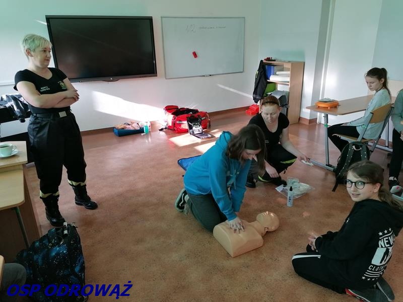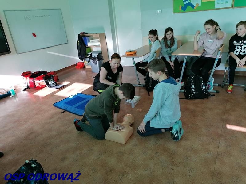 Tam, w klasie 6, przeprowadziły pogadankę na temat udzielania pierwszej pomocy. Bardzo dziękujemy Dyrekcji Szkoły i Wychowawcy klasy za zaproszenie, a młodzieży za aktywny udział w dzisiejszych zajęciach.