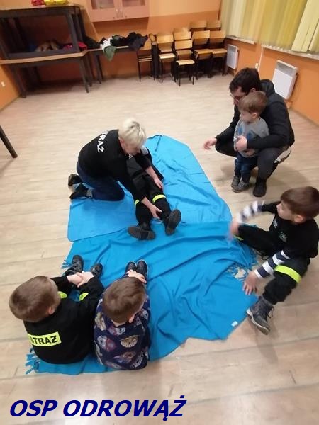 Na dzisiejszej zbiórce (28.01.2020) grupa najmłodszych strażaków ćwiczyła udzielanie pierwszej pomocy, a szczególnie układanie osoby poszkodowanej w pozycji bocznej ustalonej.