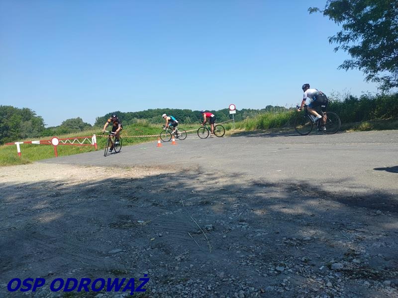 Pozostali strażacy zabezpieczali trasę zawodów na odcinku rowerowym.