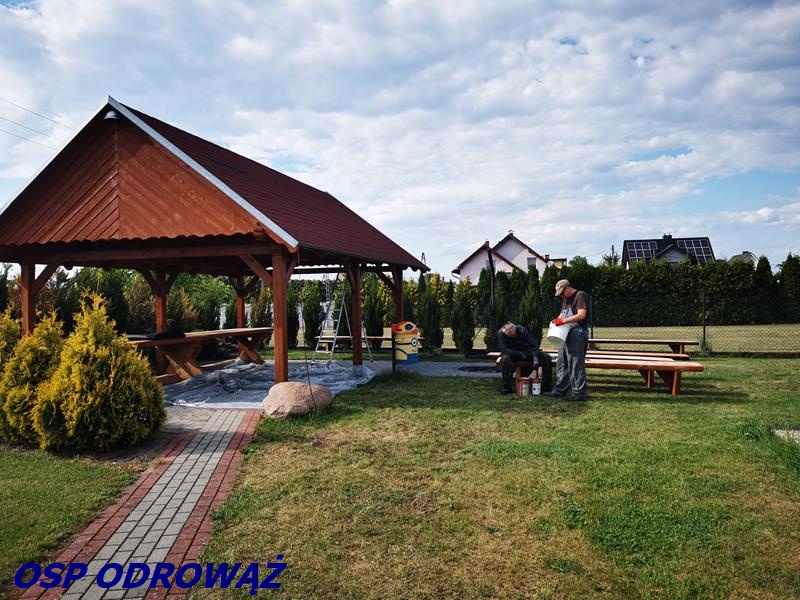 W ostatnim tygodniu nasi druhowie Marek i Rafał zajmowali się renowacją altany oraz stołów i ławek przy remizie.