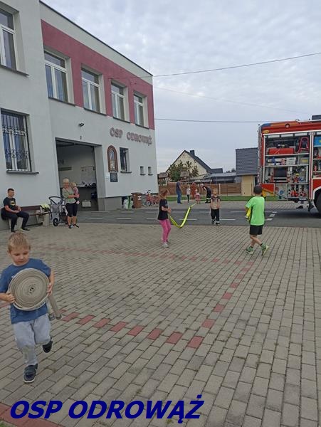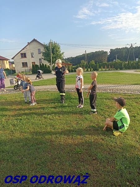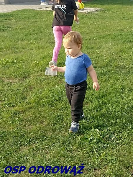 Dzieci, w ramach utrzymania dobrej kondycji fizycznej, miały do pokonania tor przeszkód, na którym nie zabrakło elementów strażackich.