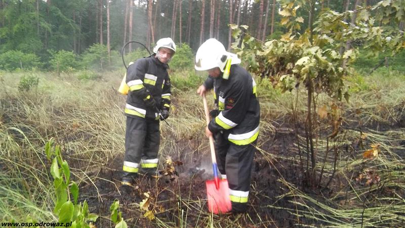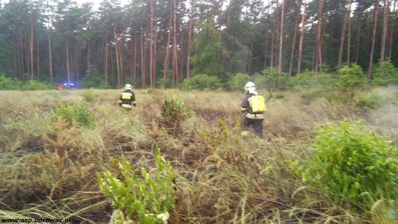 Wraz z nami przyjechały zastępy OSP Rogów Opolski. Na miejscu, ze wzglądu na utrudniony dojazd, uzbrojeni w podręczny sprzęt gaśniczy (hydronetki) udaliśmy się do usuwania zagrożenia. Spaleniu uległo około 35 arów lasu. Do bazy wróciliśmy o godzinie 17:56.