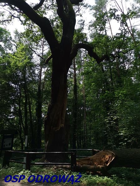 Jak wynikało ze zgłoszenia ścieżka dydaktyczna w lesie została zatarasowana przez odłamany konar dębu. Po dojeździe na miejsce i potwierdzeniu zgłoszenia, przystąpiliśmy do usuwania przeszkody. Działania zakończyliśmy o godzinie 13:40. Do akcji wyjechał Mercedes GBA Rt 449[o]45 w sile 4 strażaków.