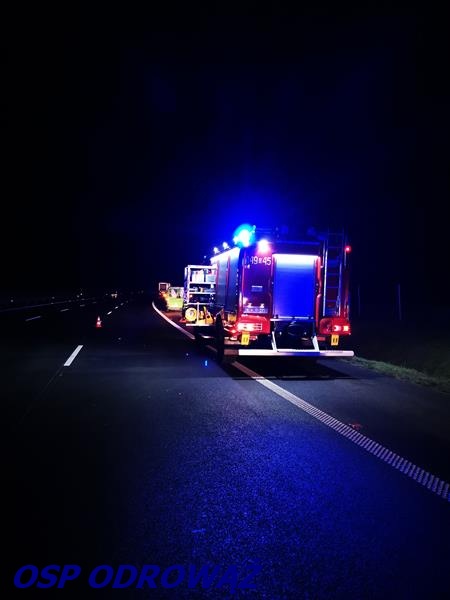 SiS: JRG Krapkowice, JRG Strzelce Opolskie, OSP Odrowąż, Policja, ZRM, patrol autostrady.