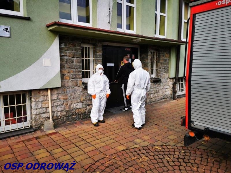Gmina Gogolin: "Nasi strażacy mają w ostatnim czasie ręce pełne roboty. W miniony weekend, w związku ze stwierdzeniem zakażenia COVID-19 u jednego z nauczycieli PSP nr 3 w Gogolinie, strażacy z OSP Odrowąż przeprowadzili akcję odkażania wszystkich pomieszczeń w budynku szkoły na ul. Szkolnej w Gogolinie z wykorzystaniem urządzeń do ozonowania pomieszczeń."