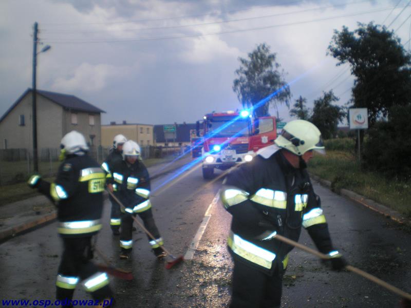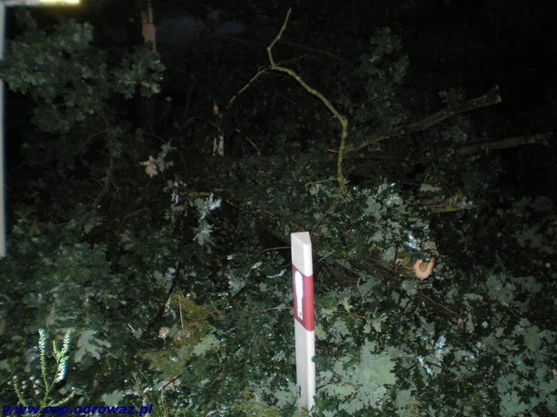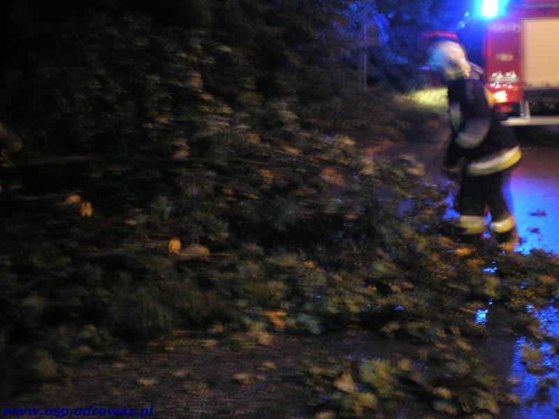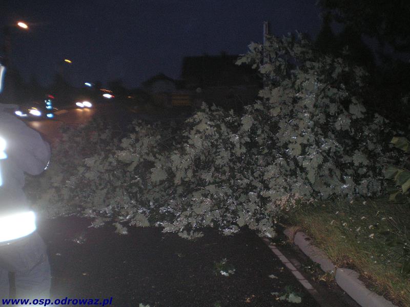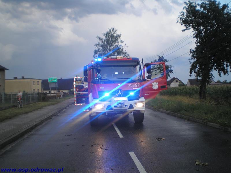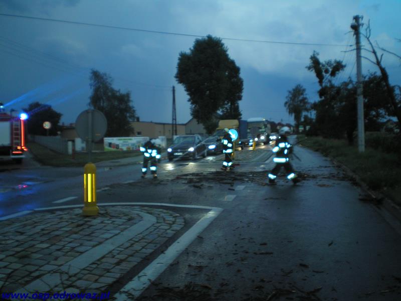 Dyżurny SK PSP w Krapkowicach zadysponował nas do miejscowości Malnia w celu usunięcia gałęzi powalonych na DW 423 oraz zerwanego kabla ze słupa telekomunikacyjnego. Następnie przedysponowano nas do Choruli do kolejnych powalonych drzew i gałęzi,zerwanych linii i połamanych słupów. Po zakończeniu działań w miejscowości Chorula, kolejna dyspozycja na teren miejscowości Odrowąż- drzewa na drodze gminnej. W akcjach brał udział jeden zastęp naszej jednostki Mercedes GBA Rt 449[o]45 w sile 6 ratowników. Do remizy wróciliśmy po godzinie 22.