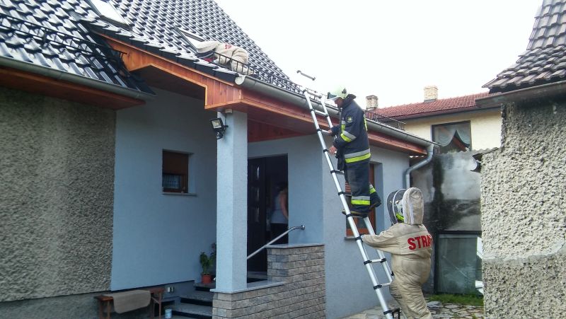Ze względu na przebywające w domu dziecko, uczulone na jad owadów, Mercedes GBA Rt 449[o]45 w sile 5 ratowników udał się do usunięcia zagnieżdżonych blisko okna dachowego agresywnie zachowujących się os. Do jednostki wróciliśmy o godzinie 17:01.