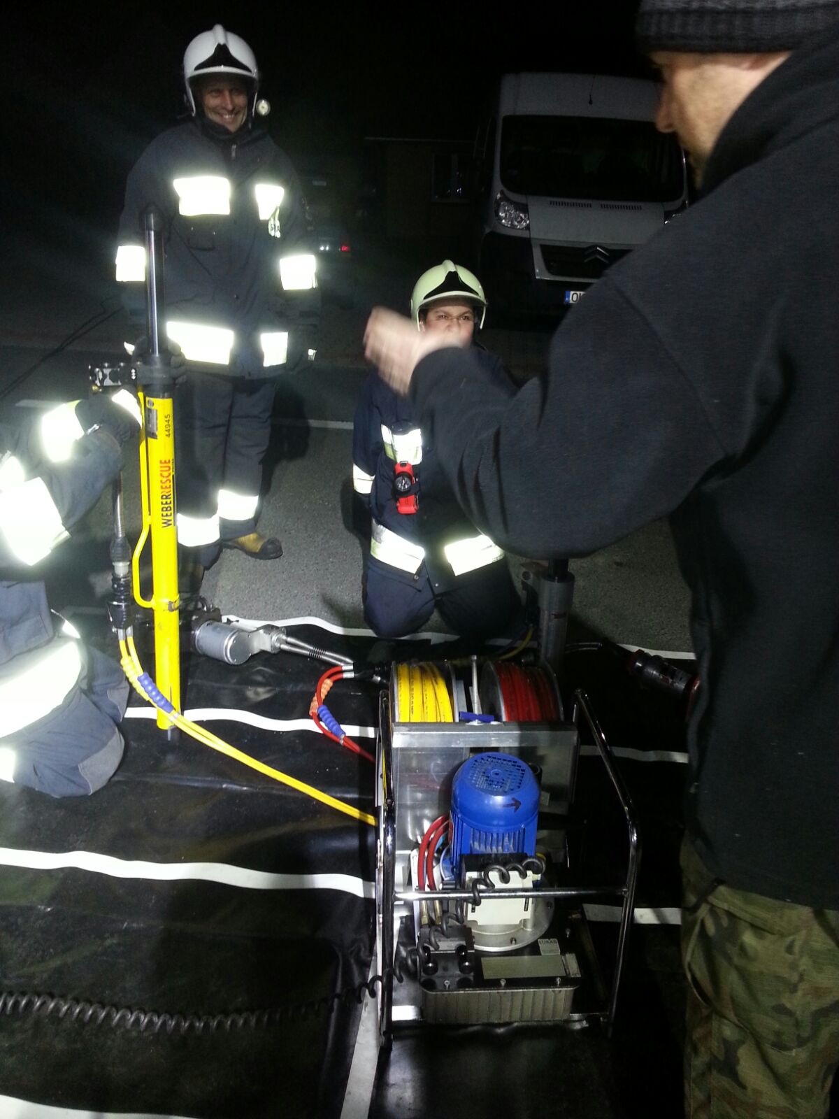 Oprócz obsługi sprzętu, tym razem musieliśmy zmierzyć się z miejscowym zagrożeniem, w którym poszkodowana została jedna osoba. Zadanie polegało na zabezpieczeniu miejsca zdarzenia, dotarciu do poszkodowanego i udzieleniu KPP, zabezpieczeniu pojazdu. W ćwiczeniach, które zakończyły się o godzinie 19:00 uczestniczyło 11 członków JOT-u.