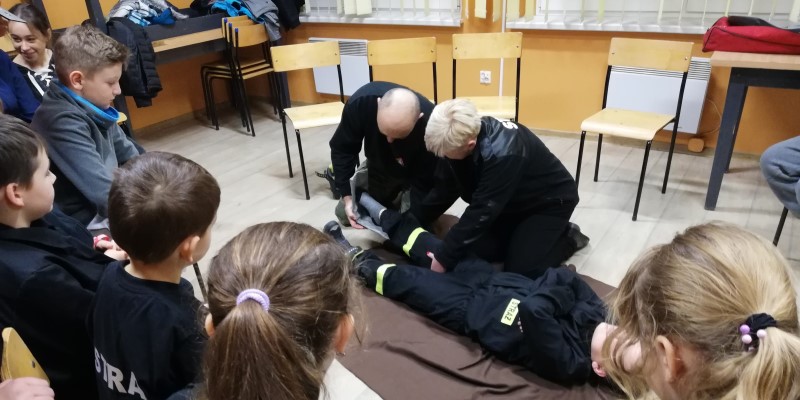 Dzisiejsza zbiórka Małych Strażaków to kolejne spotkanie z pierwszą pomocą.